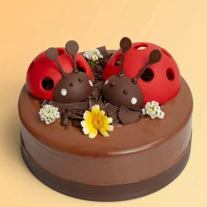 Pre-order this cute Easter cake with chocolate lady bugs and floral details. Avail 23 Mar-12 Apr